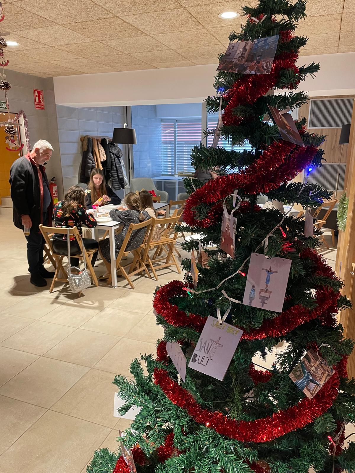 Durant la trobada, la seu social va lluir una decoració molt especial gràcies a un arbre de Nadal, ornamentat amb les fotografies dels dibuixos realitzats pels xiquets i xiquetes el dissabte al matí, durant el cap de setmana de Sant Bult. En aquella jornada, els més menuts van participar activament en la creació de les seues pròpies postals nadalenques, que posteriorment van formar part de la decoració junt amb diverses imatges representatives de les Festes de Sant Bult, creant un ambient càlid, familiar i molt emotiu.